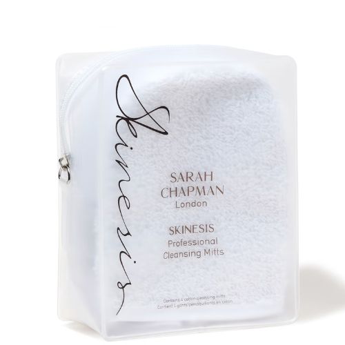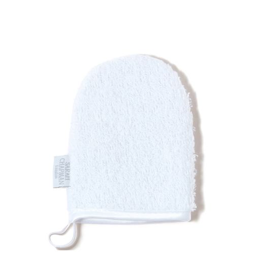 Empapa las manoplas en agua tibia, colócalas sobre cuatro dedos y exfolia suavemente para eliminar el limpiador, el maquillaje y las impurezas. Utiliza el lado fino para retirar el maquillaje de ojos. Lavar a máquina a 30 °C.