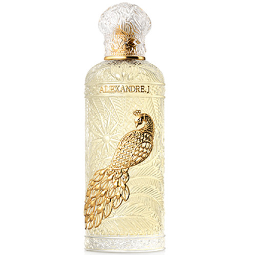Uno de los temas favoritos de Art Nouveau es la belleza decadente del pavo real que se refleja en esta exquisita fragancia.